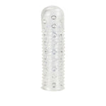 Glow-In-The-Dark Reversible Sleeves from California Exotic Novelties. Enjoy double the orgasmic ecstasy with the versatile Reversible Sleeve. The multi-purpose Reversible Stimulator Sleeve is designed for heightened sensual pleasure and mind-blowing orgasmic satisfaction. The textured, fully Reversible Sleeve is suitable for direct Penis application and stimulation and for use with your favorite vibrator. Select your preferred mode of use and tantalizing pleasure nodule side and enjoy unlimited sensual pleasure. The Reversible Sleeve is made from soft and super stretchy unscented Thermoplastic Rubber TPR. The transparent Reversible Sleeve features pleasure ridges on one side and sensual nubs and nodules on the reverse, for ultimate stimulation ecstasy. Slide the Sleeve directly over the erect Penis for instant mutual arousal and heightened sensitivity. For solo exploration fun, glide the textured sleeve over your favorite vibrator and instantly elevate your erotic experience. Power up the vibrator and indulge in unlimited fun. Suitable for first time and experienced users, the top-quality Reversible Sleeve is a great way for spicing things up. The versatile Universal Sleeve makes an ideal addition to your intimate toy collection, inspiring wild secret fantasy play. To intensify the tantalizing tingles and sensations, always use a water-based lubricant with this sex toy. Before and after every use, clean the stimulator Sleeve with a toy cleaner spray or warm, soapy water. Rinse with warm water. Pat dry before storing. Reversible universal sleeve with ridges and pleasure nodules. Use on a Penis or Vibrator. Soft, stretchy, unscented materials. Sleeve measures 5.5 inches long by 1.2 inches wide. Bulk Weight: 1.4 ounces. Safe and pure for body and pleasure. Made using phthalate free, non-toxic materials: Thermoplastic Rubber TPR. Penis extensions.