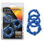 Stay Hard Beaded Cock Rings 3 Piece. Blush Stay Hard Cock Rings is a three-piece set of silicone cock rings is phthalate free and will help you to obtain a super hard erection. Three different sizes of prolong rings with stimulator pleasure beads for her. Climax control for him and clitoral stimulation for her. Use the rings together or as single rings.