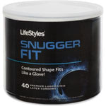 Lifestyles Snugger Fit Latex Condoms 40 Pieces individually wrapped display bowl. Lifestyles Snugger Fit Condom is designed to deliver the added stimulation and natural feeling you crave. Tighter fit. Ultra-sensitive with a unique, natural feeling shape. Lubricated for extra glide and enhanced sensation. Natural color and low latex scent. 40 condoms per bowl.