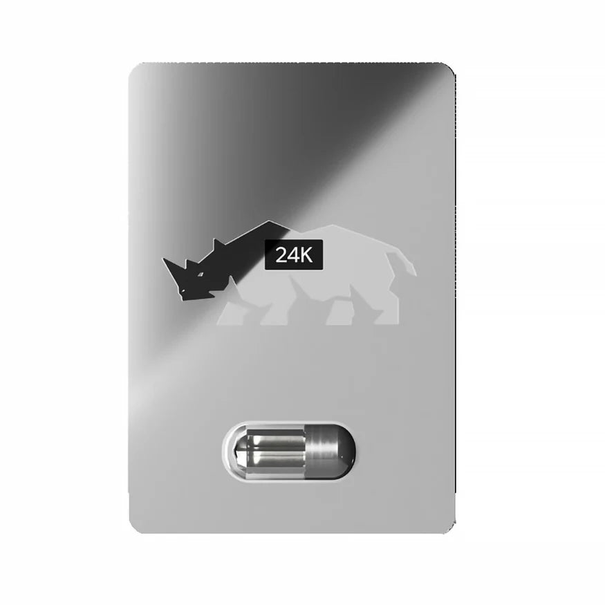 24K Platinum 1 Piece. Silver capsule for male enhancement. All-Natural Herbal Formula Long Lasting. Benefits: last a whole lot longer in bed. Fear not of premature ejaculation. Massive increase in ejaculate. Be the thickest in girth, ever Get hard, rock-hard erections. Be sexually confident and dominant. No prescriptions needed. Formulated by herbalists. Usage and effects: take one Platinum 24K capsule one hour before sex to help energy, libido, and sexual performance. Platinum 10K can also be used on a regular basis to maintain optimal condition of readiness before sex. For Best results, take Platinum 24 one hour apart from taking other supplements. Caution: consult a physician if you have heart problems. Consult a physician if you have diabetes and/or high blood pressure. We have evolved. Like gasoline to nuclear. It is so good, it is exclusive. Seriously do not tell anyone. Ingredients: Go Ji Extract, Deng Sen Extract, Hawthorne Berries, Cinnamon Bark, Horny Goat Weed, Lotus Seed, Goji Berries, Licorice, Condonopis, Cordyceps Sinensus, Rubus, Panax, Ginseng, Proprietary Blend, Vitamin B2. Made in the USA.