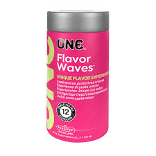 One Flavor Waves 12 Pack Bowl with Condoms. One Flavor Waves condoms contains 6 delicious flavor experiences in unique colors. Includes: Chocolate Strawberry, Island Punch, Fresh Mint, Bubblegum, Mint Chocolate, and Banana Split. Safe for intercourse and contains no sugars. All One Condoms feature Sensatex ultra soft latex for a more natural pleasure feeling. Our condoms are made from natural rubber latex, are Vegan friendly, non-GMO, lubricated with our premium Silicone lubricant, and free of any parabens, glycerin, gluten, spermicide, and fragrances. One Condoms feature our proprietary Sensatex Softer Latex that moves with your body for a more natural pleasure feeling. Triple tested for safety and reliability. Reservoir tip for additional protection. Note: Flavor Waves do not contain any sugars or sweeteners that would alter pH levels. Therefore they are safe and intended for intercourse. Nominal width 2.08 inches. Average length 4.68 inches. Barcode 726893110854. Contains the following flavors: Bubblegum, Fresh Mint, Banana Split, Island Punch, Mint Chocolate, and Chocolate Strawberry.