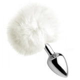 Tailz White Fluffy Bunny Tail Anal Plug. This adorable white tail will turn you into a sensual and playful bunny! Weighted for comfort, the metal plug is smooth, tapered, and petite so that insertion is easy and enjoyable, even for beginners. Your partner will love how cute you look, but more than that, they will love knowing that your ass is plugged. Tease them until they are overcome with desire! This butt plug is perfect for preparing for anal sex. Use with any lubricant of your choosing and clean with mild soap and warm water. Measurements: 5 inches in total length. Anal Plug is 3.25 inches total length, 2.5 inches insertion length, 1 inch at widest diameter. Material: Zinc Alloy Butt Plug, Faux Fur Bunny Tail. Color White. Categories: Anal Toys, Small and Medium Butt Plugs.