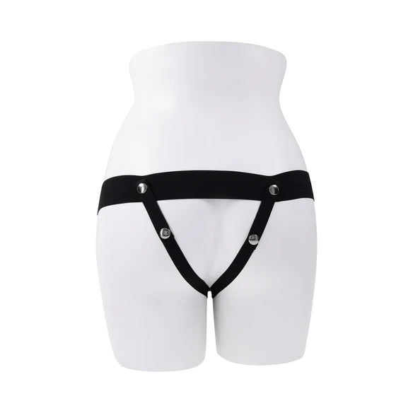 Selopa Our First Hollow Strap on Dark. This wearable strap-on hollow dildo features a silky, smooth shaft ending with a tapered crown head and is removeable for cleaning. The harness straps are stretchy at the waist and legs, with fully adjustable leg straps.
