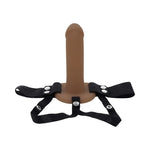 Selopa Our First Hollow Strap on Dark. This wearable strap-on hollow dildo features a silky, smooth shaft ending with a tapered crown head and is removeable for cleaning. The harness straps are stretchy at the waist and legs, with fully adjustable leg straps.