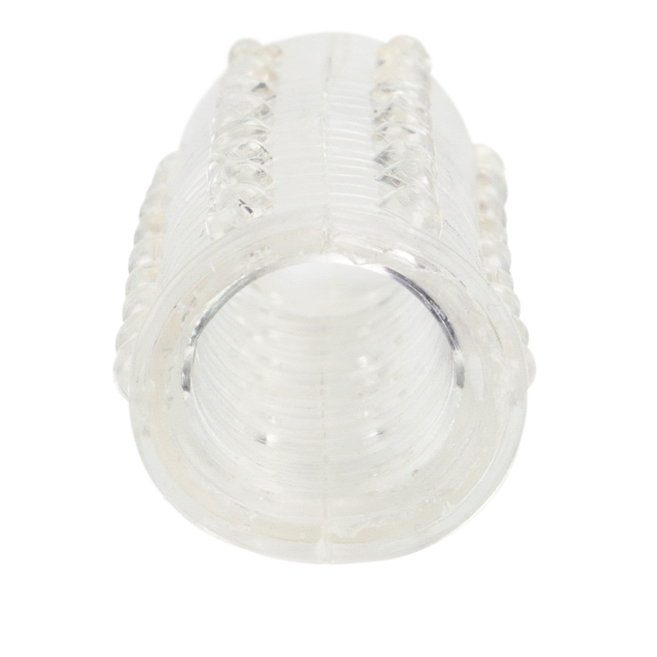 - Reversible universal sleeve with ridges and pleasure nodules.