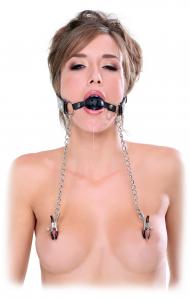 Tease and silence your lover with the naughty Ball Gag and Nipple Clamps