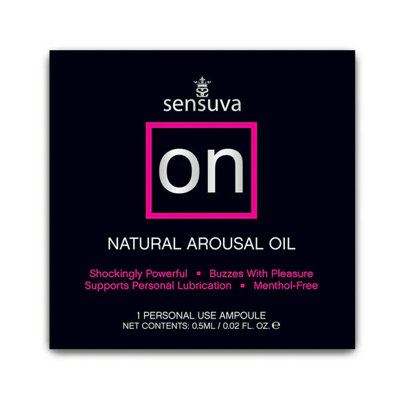 ON Arousal oil Ampoule Packet this shockingly powerful botanical formula creates a warm and extremely unique buzzing sensation that awakens the nerve endings, increases blood flow and makes a woman feel more sensation than ever before! Using ON Arousal Oil, will help a woman's body respond more easily to physical stimulation, and give her the type of full-body awareness that raises her arousal level. These two things give women the ability to achieve orgasm easier. Another wonderful benefit of ON Arousal Oil is that it may actually help some women increase their production of personal lubrication. This may be extremely helpful for women going through hormonal changes, hysterectomy, or taking medications that tend to decrease their body's ability to self-lubricate.