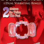 The Humm Double Dinger Dual Vibrating Ring Magenta Pink from Hott Products. 2 motors for twice the fun. Prolongs erections for him. Orgasmic stimulation for her. Portable vibrating cock ring that can fit any size penis because of its super stretch material. Twice the hummer! Humm Dinger Double Dinger is made of stretchy jelly. The erection enhancer fits around the base of the penis shaft. Two removable 1.125 inches by .5-inch bullets stimulate the testicles and clitoris. Each bullet has easy on off control and last 40 plus minutes. Warning: May cause screams of intense pleasure! Humm Dinger is the brand name known the world over for its powerful motor and super sensuous stretch Silicone, which is sure to please and tease both partners during intimate play time! Don't be fooled by the rest. Stick with the Best! It offers 40 minutes of continuous vibration and an easy on/off switch. Batteries are included for immediate use. Cock rings when worn around the base of the penis and testicles, many users find that cock rings increase sexual pleasure. Prolong rings, erection enhancement, climax control rings, cock rings.