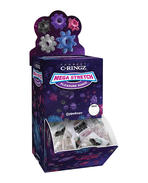 Mega Stretch Cock Rings made from phthalate free, non-toxic materials Silicone. Each cock ring is individually wrapped. Display contains 72 count assorted clear colors cock rings. Prolong your ejaculation with these mega stretch rings. Your performance will last longer, your love rod will stay harder, and your climax will be stronger. Cock rings when worn around the base of the penis and testicles, many users find that cock rings increase sexual pleasure. Prolong rings, erection enhancement, climax control rings, cock rings. Care and maintenance: wash with warm water and soap. Display is made of cardboard. These containers make a great point of purchase display or can be stacked on top of each other side by side to create a free-standing display. Please note these are compatible with Pipedream Products container. Features and functions Silicone, Phthalates Free. Country of origin China. Pipedream Products Catalog featured in A New Dimension in Pleasure page 133. Package dimensions: Depth 7.00 inches, Width 6.25 inches, Height 10.25 inches. Packaged weight 1.50 pounds. Package type Display. Categories: Party Games, Gifts, Supplies, Love Rings, Cock Rings, Classic Cock Rings. 2022.