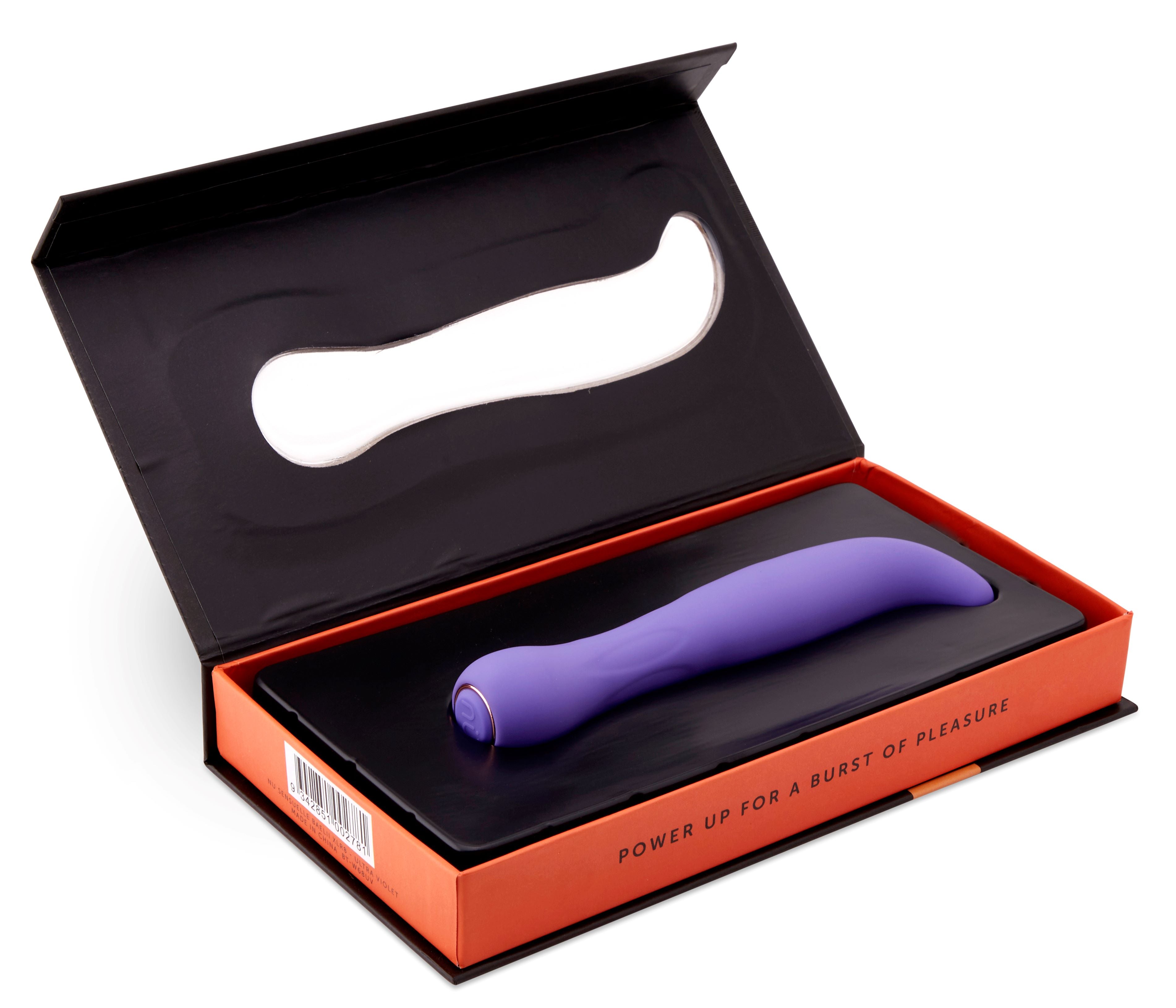 Sensuelle Baelii XLR8 Purple G-Spot Vibrator. Accelerate your pleasure with the 12 second unique turbo boost. Turbo boost feature. The NU Sensuelle Baelii USB Rechargeable G-Spot Vibe features 15 functions of deep throbbing and pulsating action. Plus, this power packed vibrator is also flexible so you can adjust it to your unique shape. Ultra smooth, silky, sensual touch in a flexible design with 15 powerful functions. It is everything you have come expect from NU Sensuelle, the leader in cutting edge vibration technology. USB Rechargeable. Material Silicone. Waterproof vibrations. Vibrator specifications: made using body safe materials: Body safe Silicone. Size: 1.46 inches by 5.94 inches. Bulk weight: .201 of a pound. Speeds Plus + Pulsations: 7 speeds and 13 pulsations. Charge type: Pinpoint USB charging port. Charging time: fully charged within approximately 3 hours. User play time: 40 minutes to 50 minutes. Interface: 1 button. 2 years warranty.