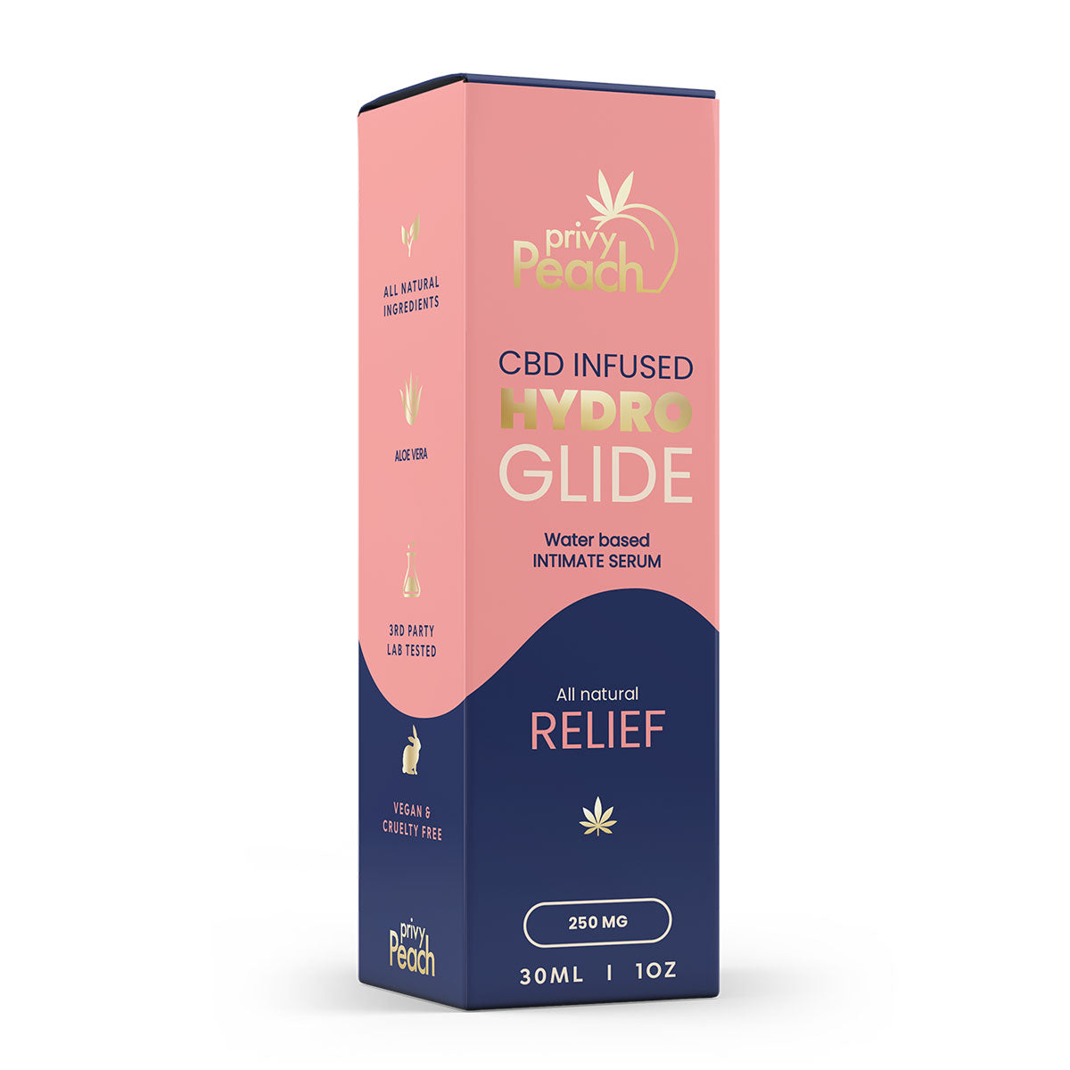 Enjoy sex as it was intended. Privy Peach's pH balanced Hydro Glide provides a circulation boost and relief for the most intimate areas. Using nano-fractionated, water-soluble CBD, Privy Peach is able to provide people with one of the few condom-compatible CBD intimate serums on the market. Recommended for vaginal dryness and painful sex associated with menopause.