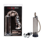 Optimum Series Maximum Results Pump from California Exotic Novelties. Pump yourself up to the maximum with incredible suction and try the Maximum Results Pump. This advanced pleasure system includes a superior Pump Handle and is ready to accommodate your growing Penis size with 9.25 inches of length and a girth 2.25 inches wide Cylinder. This high-quality pleasure Enhancement Pump offers top notch, Airtight suction to help you reach your maximum size potential and climb to new heights in both size and pleasure. The newly designed, master Grip Finger Pull Hand Pump makes increasing the suction super easy. When you have finished Pumping for the day, a Quick Release Purge Valve releases the pressure immediately. You will love the view of your harder, longer and thicker size through the Smoke colored Cylinder. The side of the Cylinder features Universal Incremental Measurements so you can keep track of your progress during use. A flexible Air Hose allows you to Pump effortlessly in all of your favorite positions. The flanged base ensures a firm seal and maximum comfort. To take your comfort and pleasure to the next level, add the soft and stretchy Silicone Sleeve to the base of the Cylinder. Pump yourself up to your maximum potential for size and pleasure while using this Pump! Pump it up to the max! Maximum Results Pump raked a superior pump handle by the American Pumpers Association. High quality enhancement pump with incredible suction for maximum results. Newly designed Master Grip Finger Pull Hand Pump. Flexible Air Hose. Quick Release Purge Valve. Smoked Cylinder with Universal Incremental Measurements. Flanged base for use with or without the included Silicone tapered Sleeve. Safe and pure for body and pleasure. Made using phthalate free, non-toxic materials ABS Plastic with Silver Plating Handle, PVC Hose, Styrene Acrylonitrile SAN Cylinder, Silicone Sleeve. Pump measures 9 inches long 2.25 inches wide. Bulk weight 9.6 ounces. Always clean before and after use. Maximum Results Penis Pump is a registered trademark for California Exotic Novelties. Sex toys and sexual wellness.
