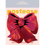 Pastease Brand Holographic Red Bows Pasties para las fiestas. Rojo con detalles en negro arco pezón Pasties por Pastease son hechos a mano en los EE.UU. de durable sin lío material de pluma brillo que se forma a las curvas y resiste las arrugas sobre el endurecimiento de los pezones. Simplemente despegar y pegar sobre la piel limpia y seca. Todos los Pastease llevan un adhesivo impermeable, de grado médico y sin látex que se mantiene en su sitio todo el tiempo que quieras y hasta que los retires con cuidado. Oculta o revela con los pasties para pezones Pastease cuando los lleves con un conjunto sexy, un bikini atrevido, un top transparente, un vestido revelador, un bolso voluminoso, una loción corporal, un disfraz loco, un tema de fiesta ¡o nada en absoluto! Utiliza estas pezoneras con lazo rojo para poner el broche de oro a tus regalos. Dimensiones 3.3 pulgadas por 3.1 pulgadas. Diámetro de cobertura 1,9 pulgadas.