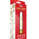 Prints Charming Santa's Helper Santa's Bitch Vibe from Global Novelties. Merry and Mighty Vibe series Santa's Bitch. Santa's Helper is packed with more strength to turn up your holiday cheer. Double powered by 2 C batteries it has the might to stuff your stocking. Free bonus drawstring storage bag. Splashproof seamless tapered design for shower only, not bathtub. Powerful multiple speed vibrations. Body safe and phthalate free ABS Plastic. Double the power. Vibrator requires 2 C batteries, not included. Easy twist base adjusts speeds. Size vibrator 8 inches in length, 7 inches insertion length by 1.5 inches in width. Categories: Classic Vibrators, Novelty Vibrators, Xmas items, Sex Toys for Women, Holiday Vibrators.