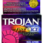 Trojan Fire Ice Dual Action Lubricant (warming and tingling mix) on both sides of the condom provides thrilling sensations of pleasure for more passion and excitement. 3 Premium Latex Condoms.
