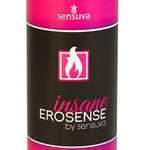 Erosense Insane Personal Moisturizer 4.2 ounces by Sensuva. Ultra warming and uniquely stimulating. The Erosense Line was created for people who are looking for healthier choices when it comes to their sexual wellness products. All of our healthy formulas include a combination of natural organic food grade, Eco-Cert, and European Certified ingredients. They are all glycerin free and paraben free plus pH balanced to work perfectly with a woman's body. Erosense is the perfect choice for anyone and the best choice for those with allergies and sensitivities. Erosense Insane is the most intense stimulating personal moisturizer on the market. When it inserted vaginally, there is a relentless heat and then the sexiest feeling of circular movement inside the body. Women can feel it internally as well as externally when it comes in contact with the clitoris. Enjoy this wild roller coaster of sensation alone, or with a partner to take your love making to a climatic burst. Advanced users of arousal products will fall absolutely in love with Erosense Insane. Insane comes in a hybrid base so it is long lasting, hydrating, and never feels sticky or tacky. As part of the entire Erosense line, it is also menthol free and contains no glycerin or parabens. Ingredients: Certified Organic Aloe Vera Juice Aloe Barbadensis, Water, Cellulose, Dimethicone, Propanediol, Isopropyl Palmitate, Sorbitan Monostearate, Potassium Sorbate, Sodium Benzoate, Stevia, Proprietary Essential Oil Bend. Erosense Insane Personal Moisturizer 4.2 ounces. Categories: Lubricants, Water Based, Silicone Based, Warming and Tingling.