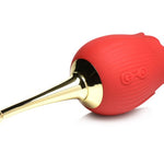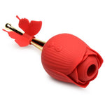 Inmi Bloomgasm Flutter Sucking Rose con Butterfly Teaser de XR Brands. ¡Esta mariposa revoloteando, vara de oro, y la rosa roja son a la vez agradable a la vista, así como su vulva! Los pétalos rojos de la rosa están hechos de silicona de primera calidad libre de ftalatos y tienen un pequeño orificio redondo que succiona suavemente el clítoris utilizando la tecnología de estimulación por aire. Disfruta de 10 modos de succión diferentes para provocar y tentar a tu pequeña perla. El tallo de la rosa es una varilla dorada con una punta redonda en forma de bola. Disfruta de 10 modos de vibración adicionales para aumentar tu placer mientras retumban por el eje del tallo y directamente en la varilla. El diseño del vástago te permite localizar tus puntos de placer con vibraciones específicas para una satisfacción personalizada. Con la combinación de succión y vibración, ¡disfruta del beneficio añadido de una hermosa mariposa de silicona! Las alas revolotean con la varilla vibradora para añadir una sensación extra a los puntos erógenos más sensibles de la vulva. Añade tu lubricante favorito a base de agua para obtener mejores resultados y evitar que la silicona se degrade. Disfruta de este juguete también en la ducha. Es resistente al agua IPX6. Después de jugar, lávalo con agua tibia y jabón suave, luego rocíalo con un limpiador de juguetes y sécalo con un paño. Recárgalo con el cable USB suministrado. Esta rosa sexy es el juguete de placer siempre floreciente perfecto para cualquier chica. Coloca la rosa en ángulo para que el orificio de estimulación de aire se sitúe directamente sobre o alrededor de tu clítoris y luego juega con los ajustes para encontrar el nivel perfecto de intensidad. Aleja el juguete y acércalo de nuevo para que la rosa succione tu pequeña perla y la capture en un juego floreciente de placer y sensaciones. Consigue el punto exacto girando la rosa y colocando el extremo puntiagudo del tallo directamente sobre tu clítoris para un placer aún más profundo e intenso. Medidas: longitud total 5,8 pulgadas, longitud del vibrador pinpoint 3 pulgadas, diámetro de la abertura del Air-stim 0,5 pulgadas. Materiales: Silicona, plástico ABS. Color: Rojo. Nota: el grado de impermeabilidad IPX6 se puede llevar en la ducha pero no sumergido en el agua. Utilice sólo lubricantes a base de agua para obtener mejores resultados. Características principales: Rosa de Silicona con Mariposa Teaser: Este juguete de silicona de alta calidad, libre de ftalatos, tiene una hermosa rosa de múltiples pétalos con una gran abertura para succionar el clítoris y un estimulador de mariposa suave como la seda que se asienta en la varilla del vibrador y se agita sensualmente con la vibración. Air Stim Clitoral Sucking: ¡disfruta de 10 modos de succión del clítoris gracias a la abertura air-stim de la rosa! Potente vibración milimétrica: la varilla dorada tiene una perla redonda en el extremo para un placer milimétrico. Disfruta de 10 modos de potente vibración que podrás sentir exactamente en el punto que desees. Vibración resistente al agua. Recargable. Este juguete puede soportar potentes chorros para divertirte a lo grande. Después de usarlo, recárgalo con el cable USB suministrado.