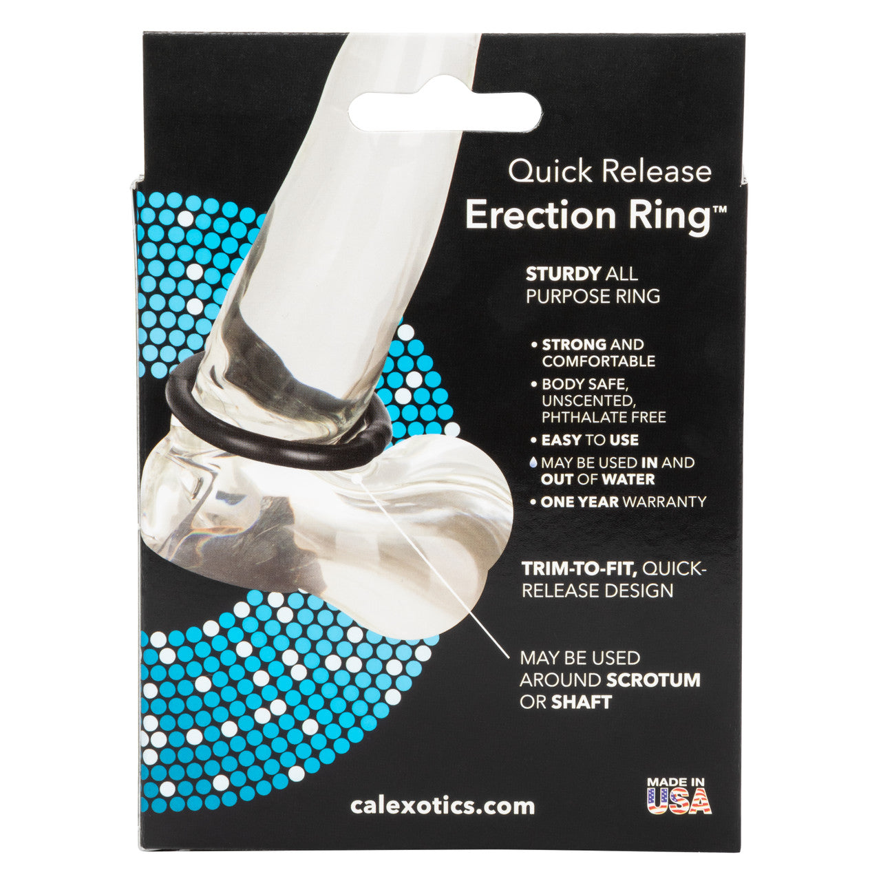- Quick Release Erection Ring is a single cock ring. High quality rubber that you can trim to fit. Easy to remove. Safe and pure for body and pleasure. Made using phthalate free, non-toxic materials Rubber. Erection ring measures 9 inches long by .5 inch wide