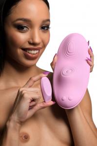 Inmi Pulse Slider Silicone Pad Pulsating and Vibrating from XR Brands. Transform any chair, couch, bench of stool into a sex machine! This pulsing and vibrating Silicone pad is a great alternative to buying a saddle or rideable sex machine and is compact and discreet enough to take with you and enjoy whenever you're alone! The clit stimulating pulses and the buzzing vibration is bound to get your heart beating and your hips grinding! Enjoy 4 speeds and 7 patterns of simultaneous pulsing and vibration as you indulge in carnal bliss while leaving your hands free to touch and caress your body! Use the rechargeable remote to control the pad from up to 16 feet away! You can hold it in your hand or hand it over to your partner so they can pleasure you from across the room as you give them a sensual show! Waterproof and rechargeable, this premium, silky soft, phthalate free Silicone pad is rated IPX7 waterproof so it can handle any splashing fluids or wetness and can even be submerged underwater for up to 30 minutes! Recharge using the USB cable provided. Turn on the remote so it pairs with the pad, then grab your water based lubricant and rub it over the ribbed mound and the pulsing stimulator. Use extra if you feel you want to get even more slippery! Begin to cycle through the speeds and patterns and enjoy the pulsing on your clit and the vibration against your lips and backdoor! Let yourself grind and hump it, the sensations rolling through you, your hands free to touch yourself or your lover freely as you climb to ecstatic heights! Measurements: overall length 9.5 inches. Overall width 4.3 inches. Nubs are 1.1 inches and 1.5 inches in height. Materials: Silicone, ABS Plastic. Color: Pink. Note: remote distance up to 16 feet. Key features: Premium Silicone Grinding Pad. This silky, smooth pad is designed for you to grind and hump! Enjoy the ribbed mound and the pulsing clit stimulator. Made of premium, phthalate free Silicone. Pulsing and vibration enjoy 4 speeds and 7 patterns of simultaneous pulsing and vibration! Remote Controlled: Control all the functions with the rechargeable remote from up to 16 feet away! Set the pulse and vibes and enjoy hands free! Waterproof and Rechargeable: Rated IPX7 waterproof so it can handle gushing wetness and be submerged underwater for up to 30 minutes. Both the remote and the pad are rechargeable via the USB charging cable