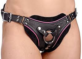 - This vegan friendly strap on harness has exciting pink accents and a low cut designed to help draw their eye and keep their attention fixed on you.