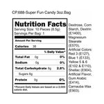 Ingredients: Dextrose, Maltodextrin, Glucose Syrup, Artificial Flavor, Magnesium Stearate (E570), Artificial Colors: FD&C Red 40 (E129), FD&C Blue 1 (E133), FD&C Yellow 5 (E102), Carnauba Wax (E903).