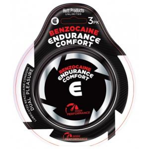 Endurance Comfort Benzocaine Latex Condoms 3 Count Package. Endurance Lubricated Condom 3 pack. Benzocaine is a local anesthetic and pain reliever. It works by temporarily numbing the area to which it is applied. Benzocaine helps in delaying ejaculation and may prolong erections and performance during intercourse. Endurance Comfort Condoms have Benzocaine cream on the inside, which may help to enhance pleasure for both you and your partner. Features Endurance Comfort 3 Pack. Great feel. Lubricated with Benzocaine.
