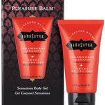 Kama Sutra Pleasure Balm Strawberry Dream Sensations Body Gel feel the tingle. Kissable, water-based body gel for romantic play. Formulated to provide a refreshing tingling sensation on the skin. Not a flavored lubricant. Features: refreshing, kissable body treat. Exciting cool, tingly sensation can enhance sensual response. Water based and non-staining. Flavor Strawberry Dream lusciously sweet strawberry sorbet. How to use: apply a small amount of Pleasure Balm to the erogenous zones of the body and enjoy the cool tingling sensation. Follow with kisses. Please note not a flavored lubricant, Pleasure Balm is a flavored body balm designed for foreplay enhancement. 1.7 fluid ounces. Made in the USA.