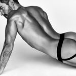 Tokyo Suspender is Perlseo's most minimal, sexy and daring garment, created for the man who seeks to experience pleasure from a new dimension. Made of soft semi-transparent stretch fabric with a striped effect and black elastic straps, this piece combines visual elegance with erotic functionality.